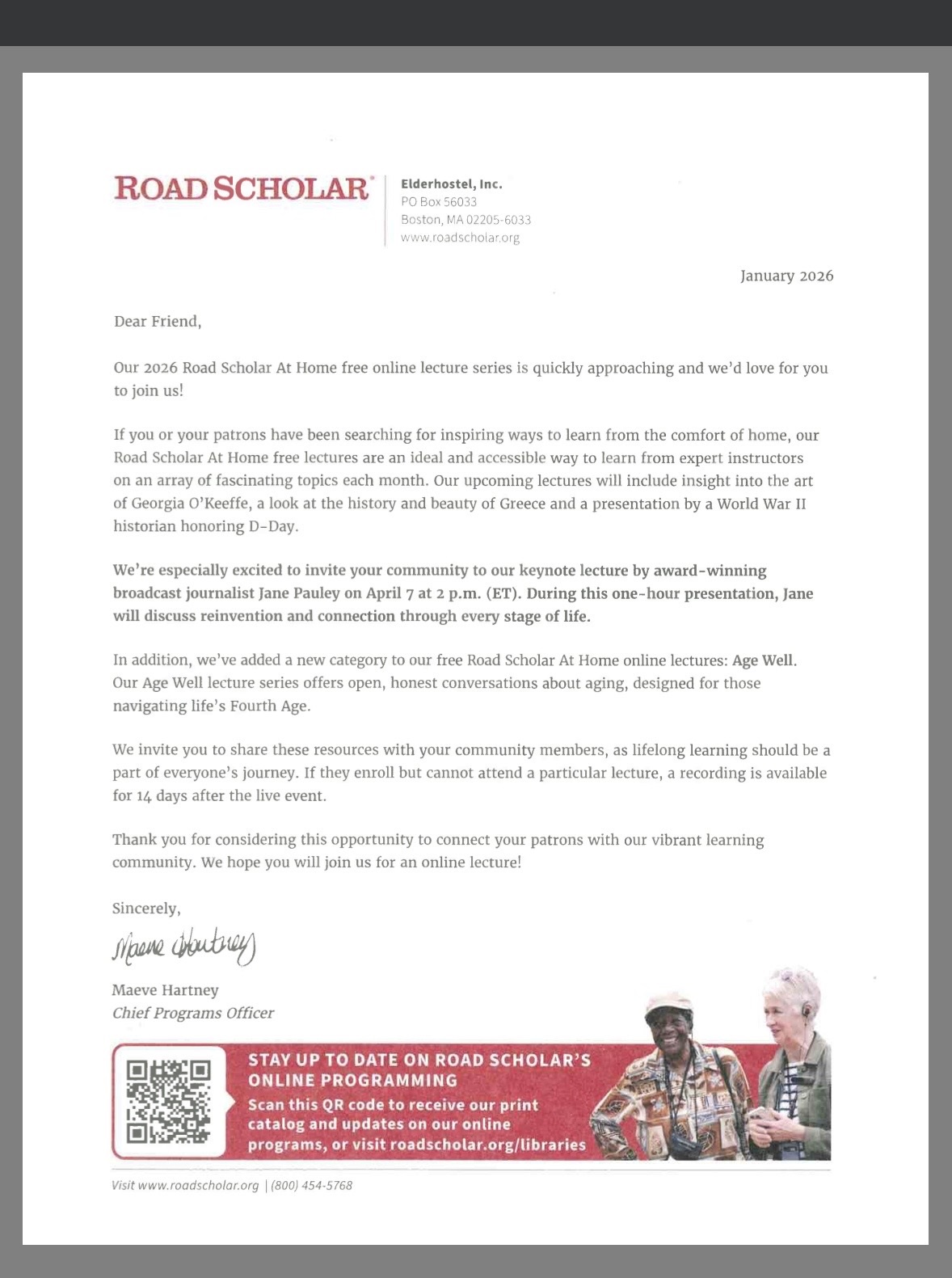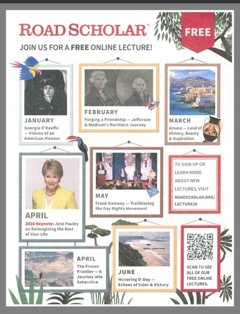 Road Scholar: Free Online Lectures! Please scan QR Code for more information